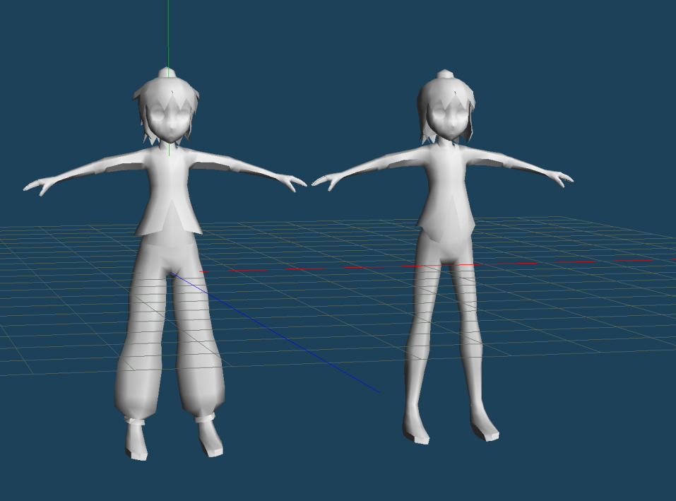 椛のモデル(左) ニッカポッカなのは原作ロングスカートまたは袴だと動きにくそうだから。隣は文のモデル(作りかけ)。こっちはまだスカート履かせてねぇからタダの変態。